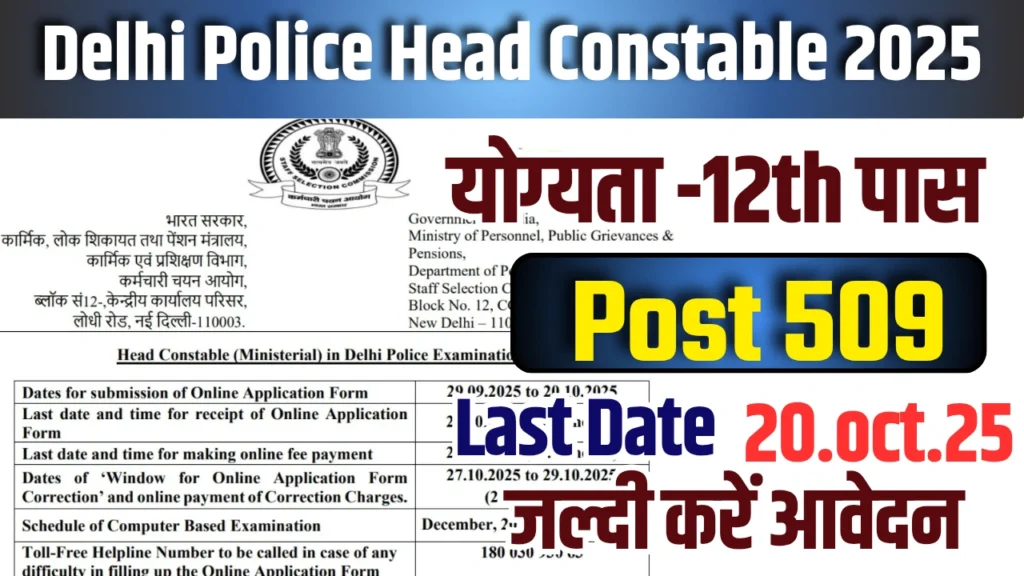 Delhi Police HCM Vacancy 2025 को लेकर 509 पदों पर भर्ती निकाली गई है।
