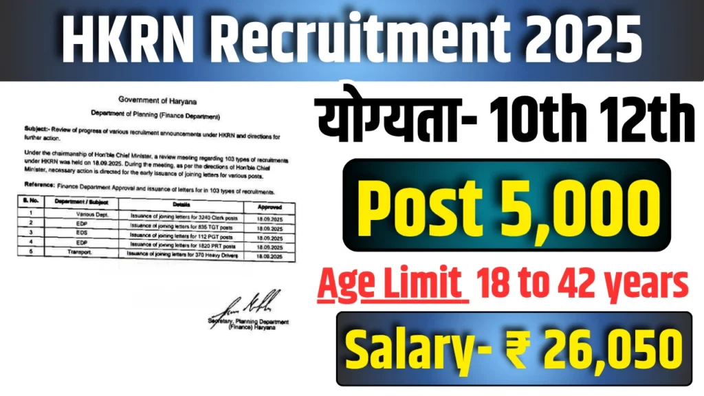 HKRN Vacancy 2025 को लेकर आवेदन प्रक्रिया 12 अगस्त को शुरू किया गया है और इसकी आवेदन प्रक्रिया 30/11/2025 तक चलने वाली है। HKRN Bharti 2025 को लेकर आवेदन प्रक्रिया, महत्वपूर्ण दस्तावेज, पदों को लेकर, इस संबंध महत्वपूर्ण तिथि, आयु सीमा, एग्जाम पेटर्न्स, चयन प्रक्रिया, सिलेबस और आवेदन शुल्क आदि चीजों को लेकर इस आर्टिकल के माध्यम से हम आपको समझने वाले हैं।