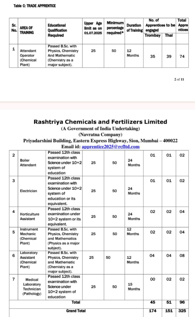 | Recruitment Name | RCFL Apprentice Recruitment 2025 |